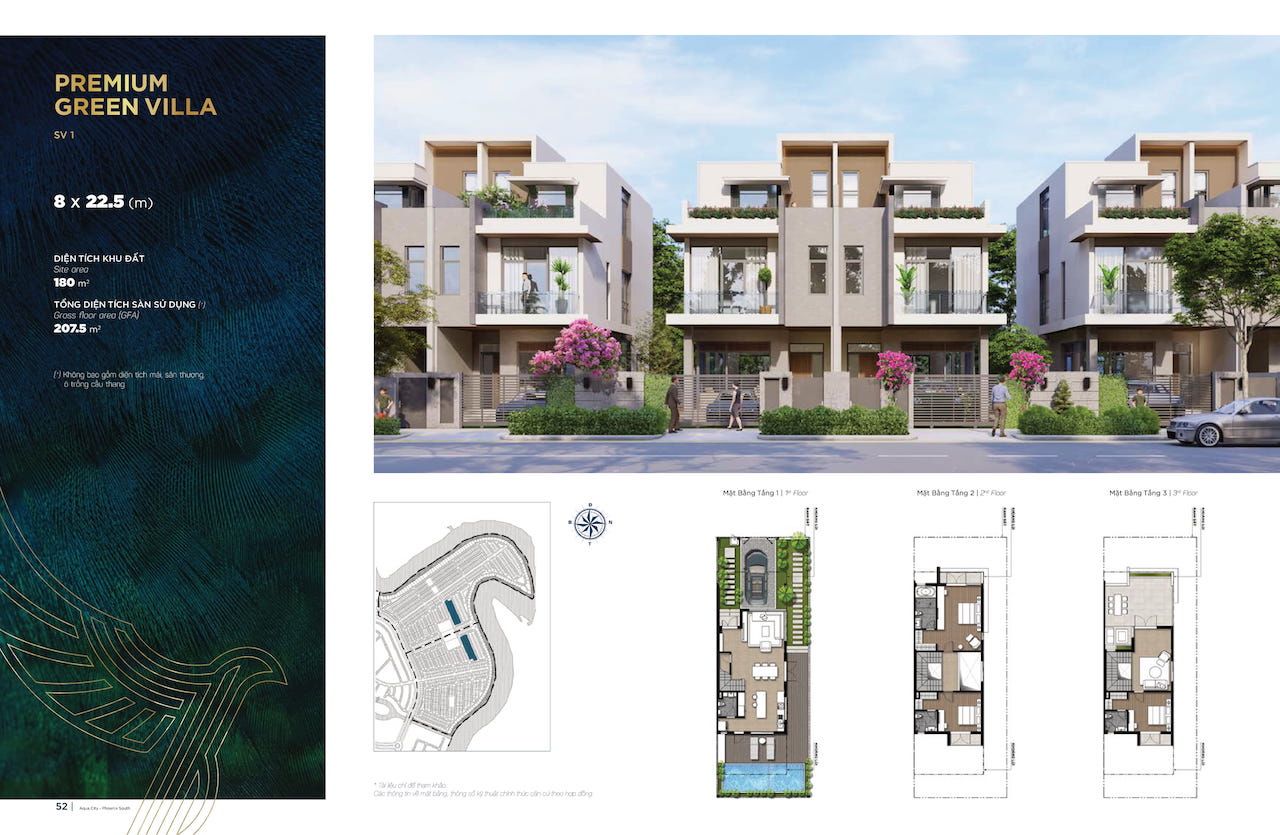 - Diện tích đa dạng: nhà phố diện tích từ 120 m2 – 160 m2; nhà phố thương mại diện tích từ 120 m2; biệt thự diện tích từ 180 m2 – 250 m2.