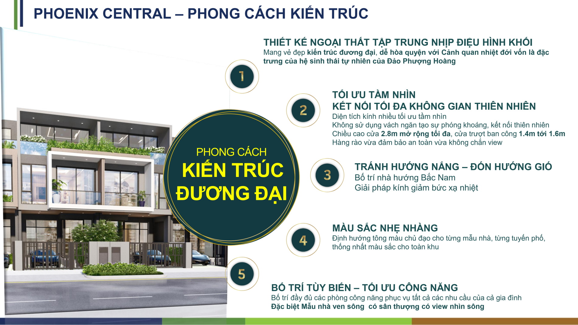 Quy hoạch kiến trúc của dự án Aqua City nói chung và phân khu Phoenix Central nói riêng đáp ứng công năng cùng gout thẩm mỹ cao, giàu trải nghiệm, hướng đến một cuộc sống sinh thái giao hòa, tiện nghi và đẳng cấp cho một cộng đồng cư dân.