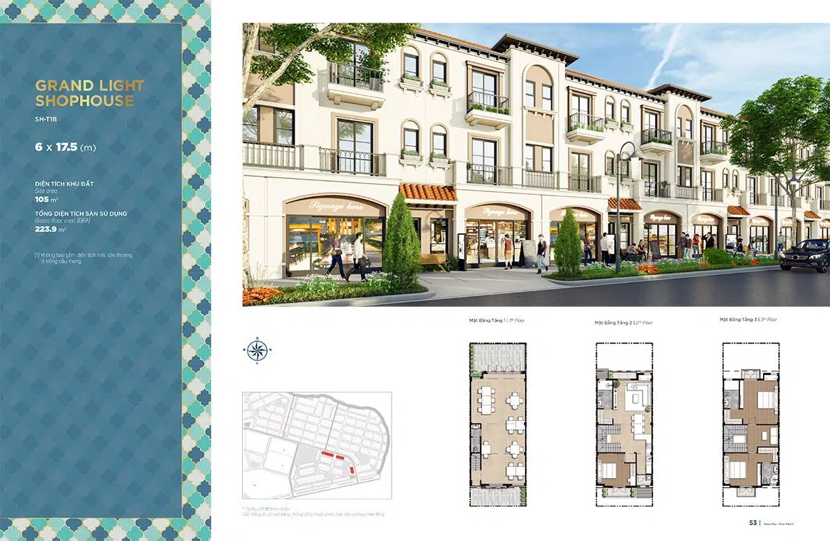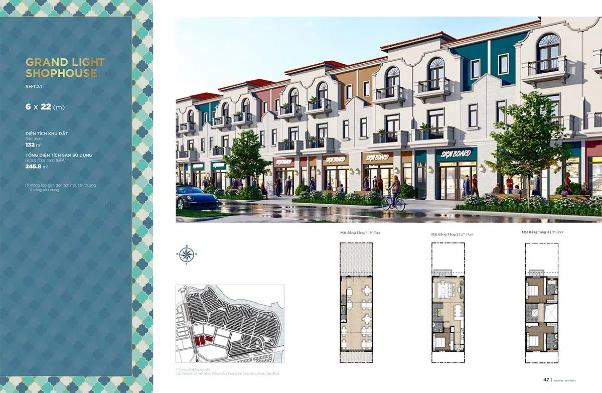 • Loại hình: Shophouse thương mại, biệt thự và nhà phố.